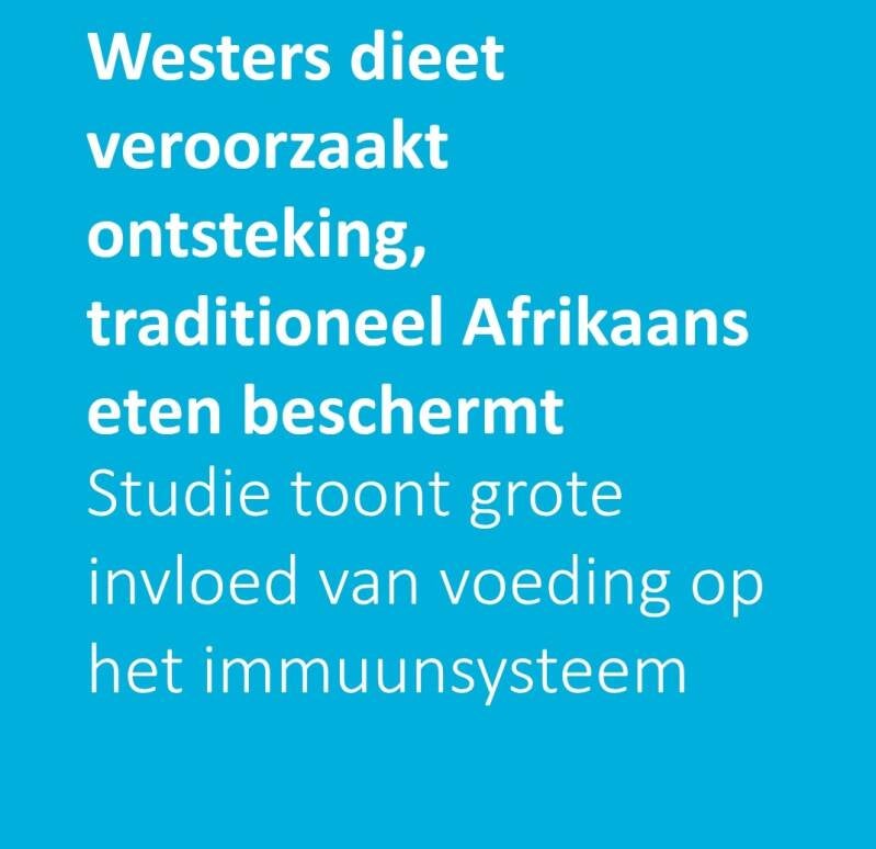 “Een overstap van slechts twee weken van een traditioneel Afrikaans dieet naar een Westers dieet veroorzaakt ontstekingen, vermindert de weerstand tegen ziekteverwekkers en activeert processen die typisch zijn voor welvaartsziekten. Omgekeerd heeft een Afrikaans voedingspatroon, rijk aan groenten, vezels en gefermenteerde producten, juist een positief effect op de gezondheid.”
