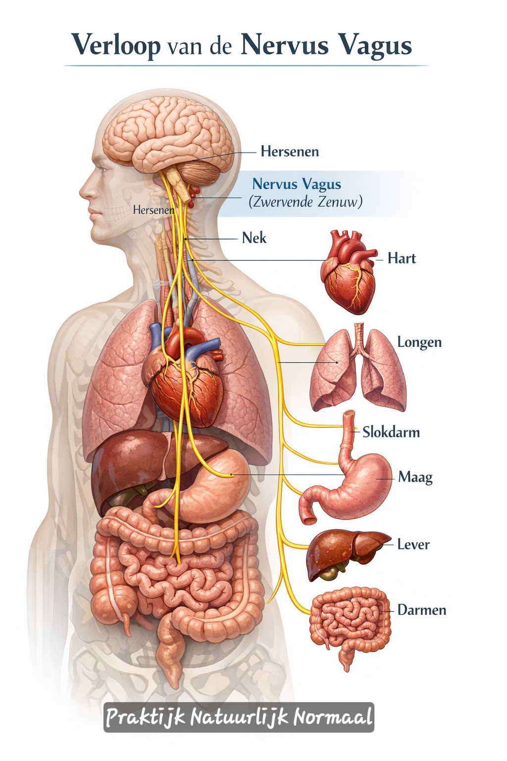 Hij verbindt je hersenen ↔ hart ↔ longen ↔ darmen.
